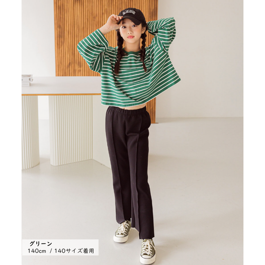 ボーダー柄 クロップド丈 長袖 ロンT