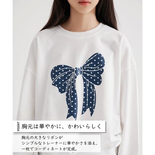 売り切れリボン柄 長袖 トレーナー